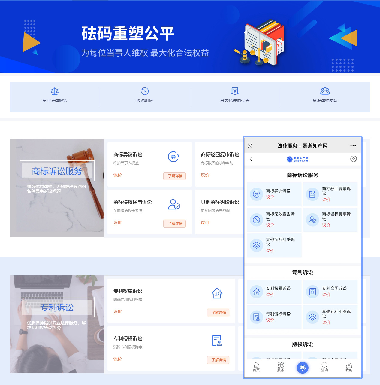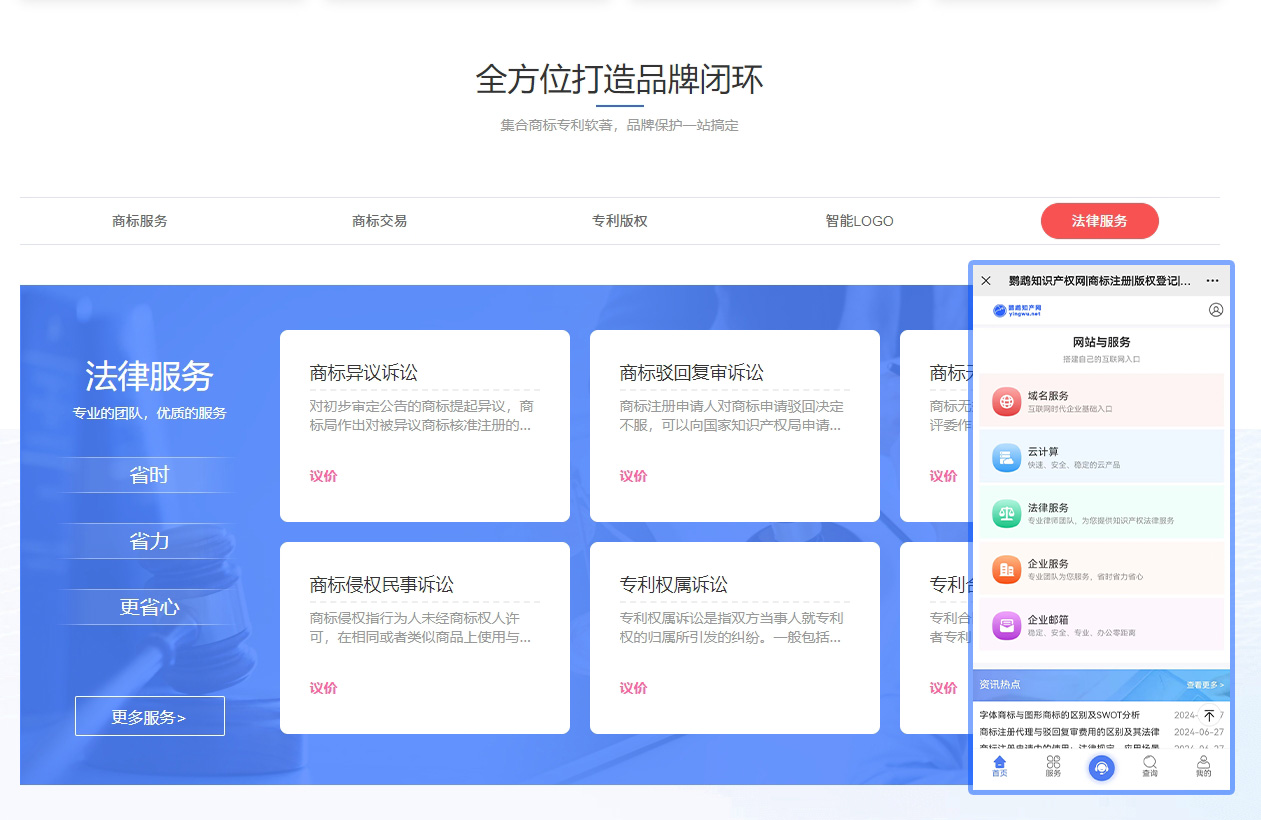 本文《yingwu.net鹦鹉知产网2024.06.28升级:新增法律服务产品模块》的素材转载自网络,涉及的文字、图片及其他作品的版权归原作者所有。如本文中引用的信息涉及第三方权益,可能存在侵权或其他法律风险,请及时与我们联系,以便进行修改或删除。本文内容仅为传递节日祝福、法律知识、新闻动态和企业管理经验之目的,仅供参考。我们尊重作者的观点或立场,但其观点或立场不代表本单位/网站的认可,也不构成本单位/网站的意见或立场。