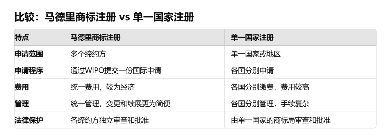 - 费用节省:相较于逐一国家申请,马德里体系更为经济。