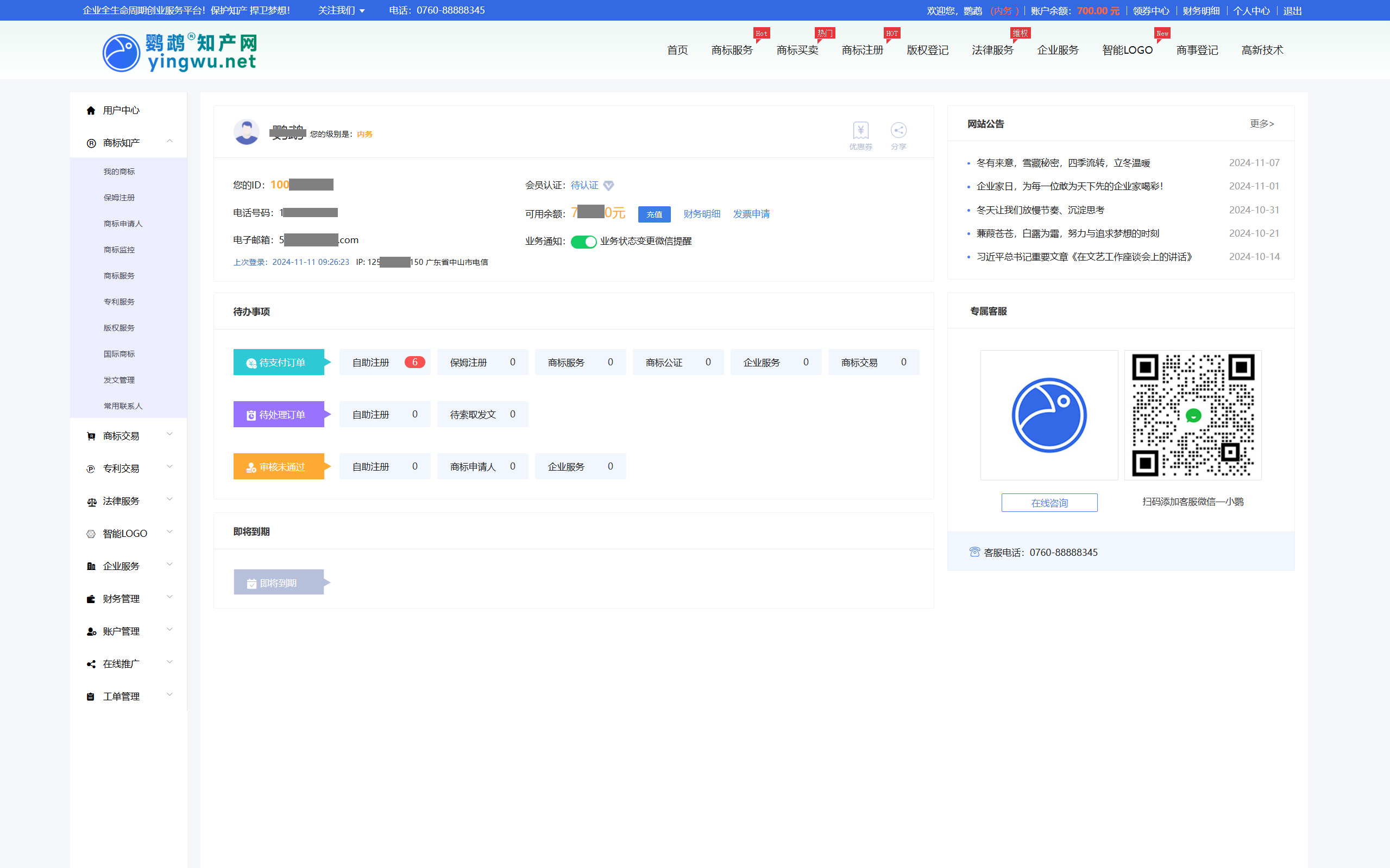 鹦鹉知产网用户中心今日完成了全新 UI 界面升级,以“简约现代、与时俱进”为核心设计理念,融入企业标准配色,传递“保护知产,捍卫梦想”的品牌价值观。此次改版在提升用户体验的同时,也更好地展现了企业专业、创新的形象。