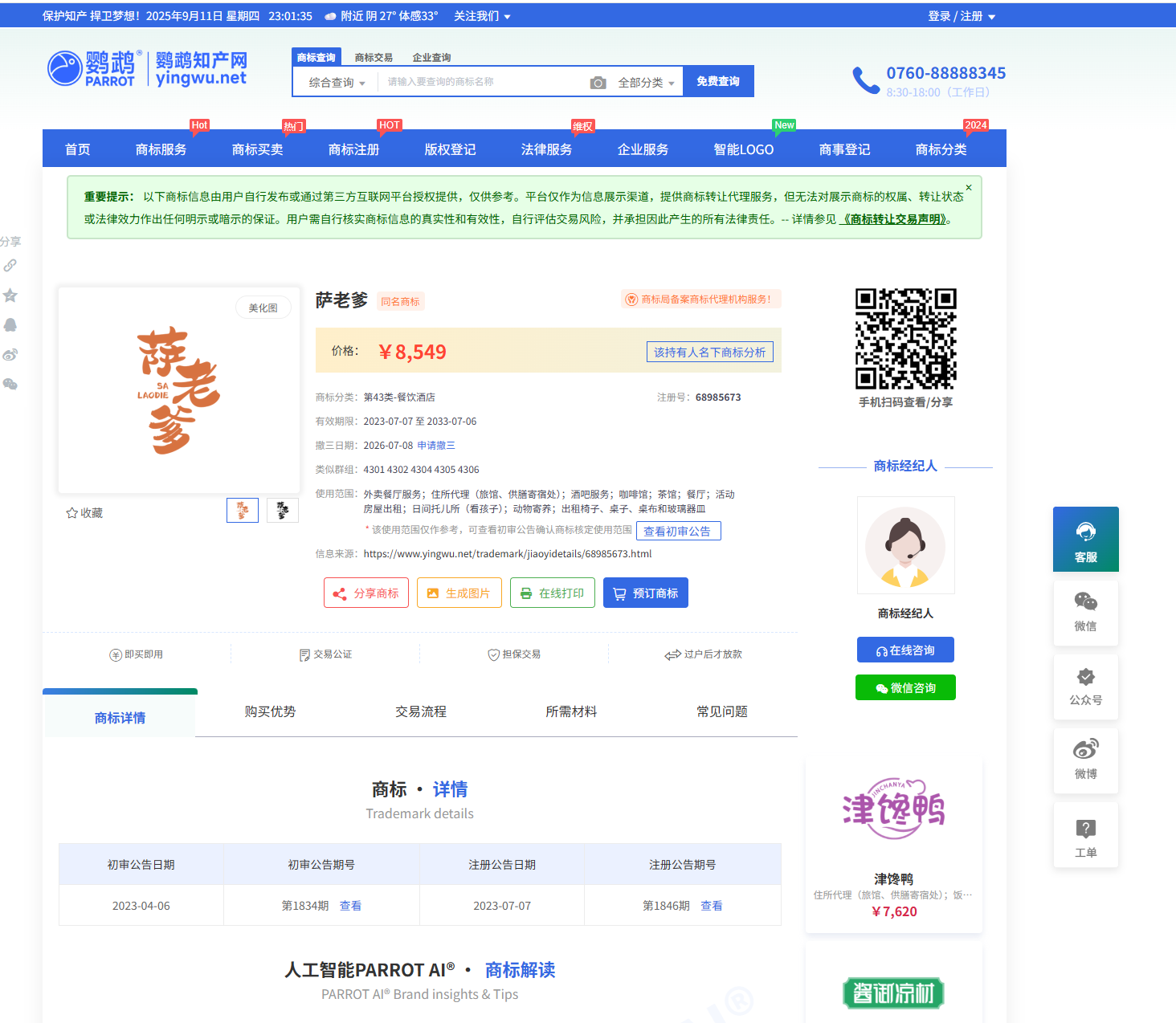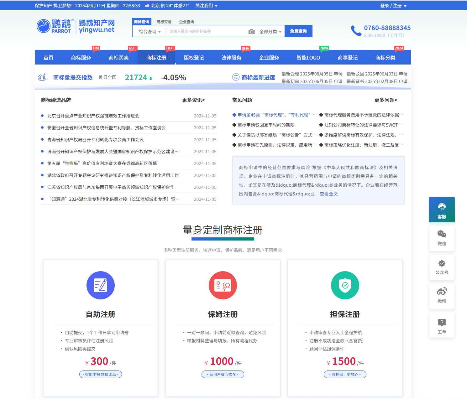 为提升鹦鹉知产网前端视觉统一性与用户体验,2025年9月期间,对商标服务、资讯展示、交易流程等多个模块的 UI 进行了优化与改版,主要调整点如下: