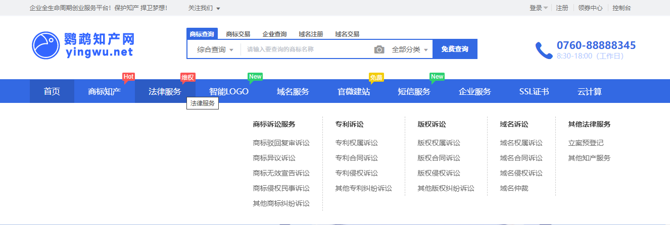 yingwu.net鹦鹉知产网2024.06.28升级:新增法律服务产品模块